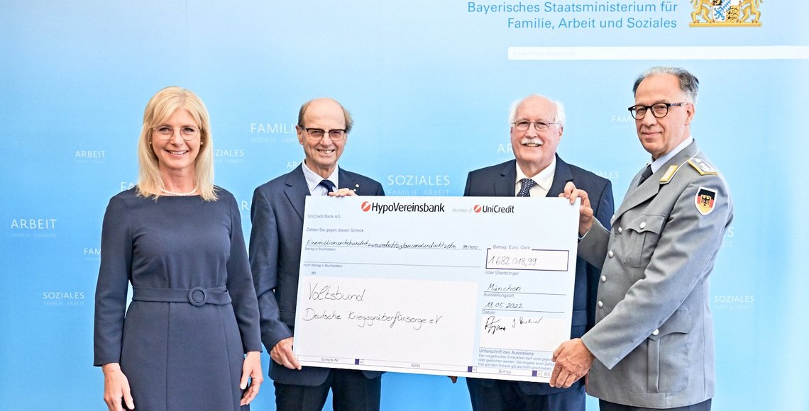 Dank der großzügigen Spenden aus der Bevölkerung konnten bei der Haus-, Straßen- und Friedhofssammlung 2021 des Volksbundes Deutsche Kriegsgräberfürsorge e.V. in Bayern ein Ergebnis von 1,682 Millionen Euro erzielt werden. Anlässlich eines Empfanges im Bayerischen Staatsministerium für Familie, Arbeit und Soziales am 18. Mai 2022 in München würdigten Staatsministerin Ulrike Scharf, der Stellvertretende Kommandeur im Landeskommando Bayern, Oberst Knuth Jung, der Präsident der Arbeitsgemeinschaft der Soldaten-, Reservisten- und Traditionsverbände in Bayern, Generalmajor a.D. Jürgen Reichardt und der Vorsitzende des Volksbund-Landesverbandes, Regierungspräsident a.D. Wilhelm Wenning, die hervorragende Hilfe seitens der Bundeswehr, der Reservisten und vieler Altgedienter bei der Sammlung. Darüber hinaus wurde deren Engagement bei der Gedenkkerzen-Aktion, Jugendlagern, Arbeitseinsätzen auf deutschen Soldatenfriedhöfen im In- und Ausland und am Volkstrauertag gelobt.
